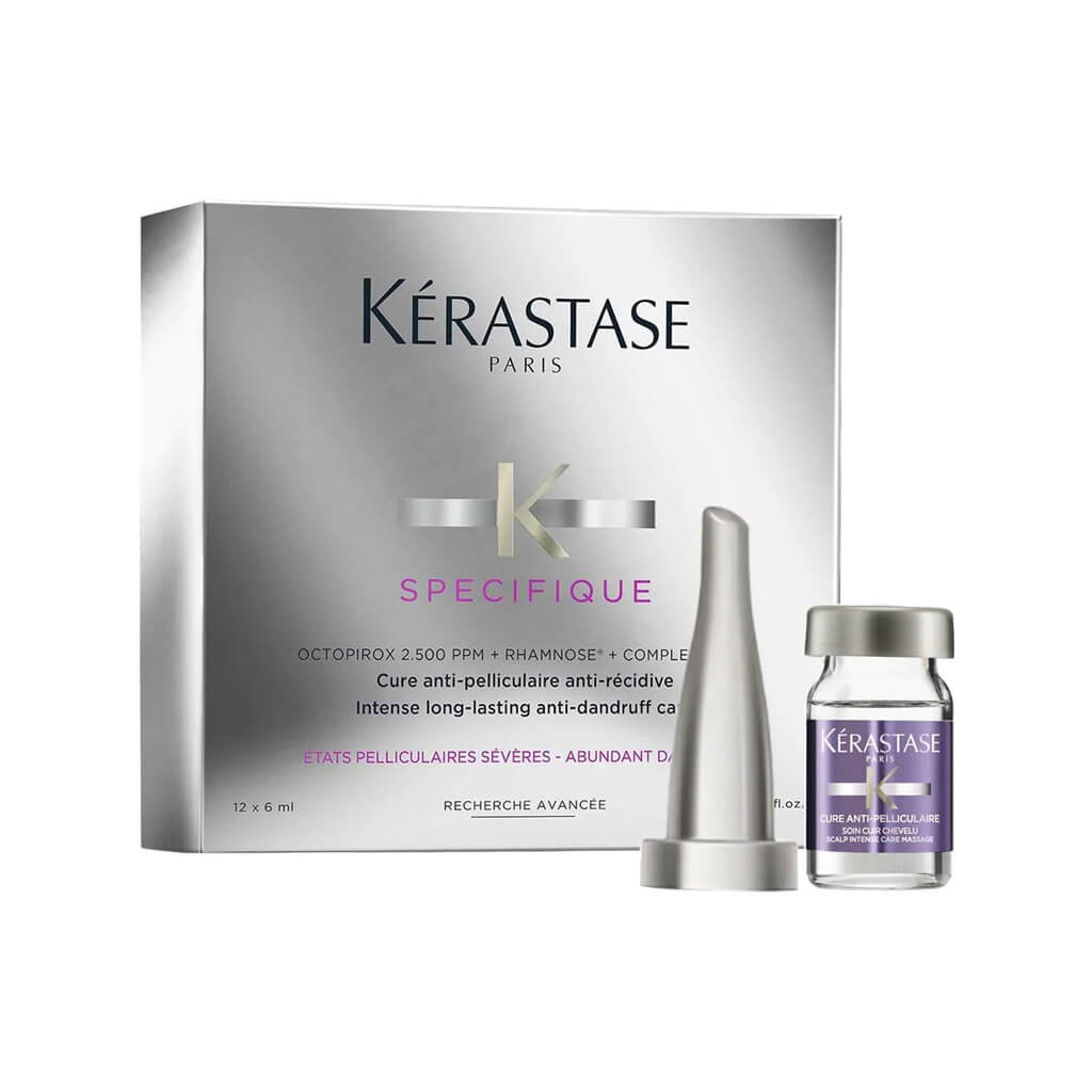 Serum Kérastase Specifique Anti-Pelliculaire có tên gọi nguyên bản là Kérastase Specifique Cure Anti-Pelliculaire. Đây là một liệu trình chữa trị da đầu chống gàu chuyên sâu giúp loại bỏ các vảy gàu khô và nhờn. Sản phẩm có khả năng điều trị giúp phục hồi chất lượng và độ mềm mại có thể nhìn thấy của da đầu, đồng thời bảo vệ chống lại stress oxy hóa.